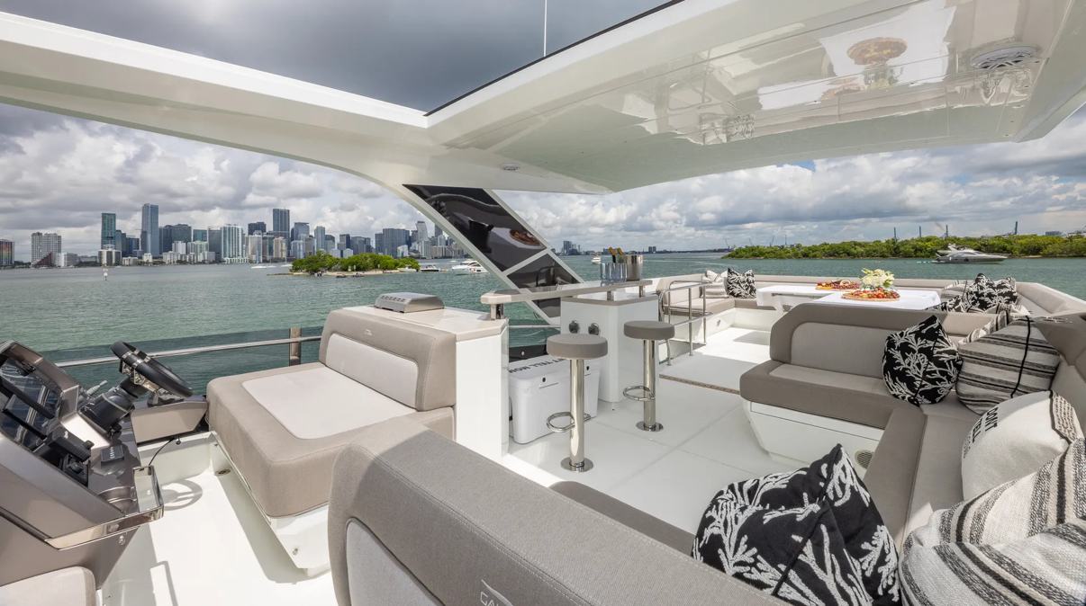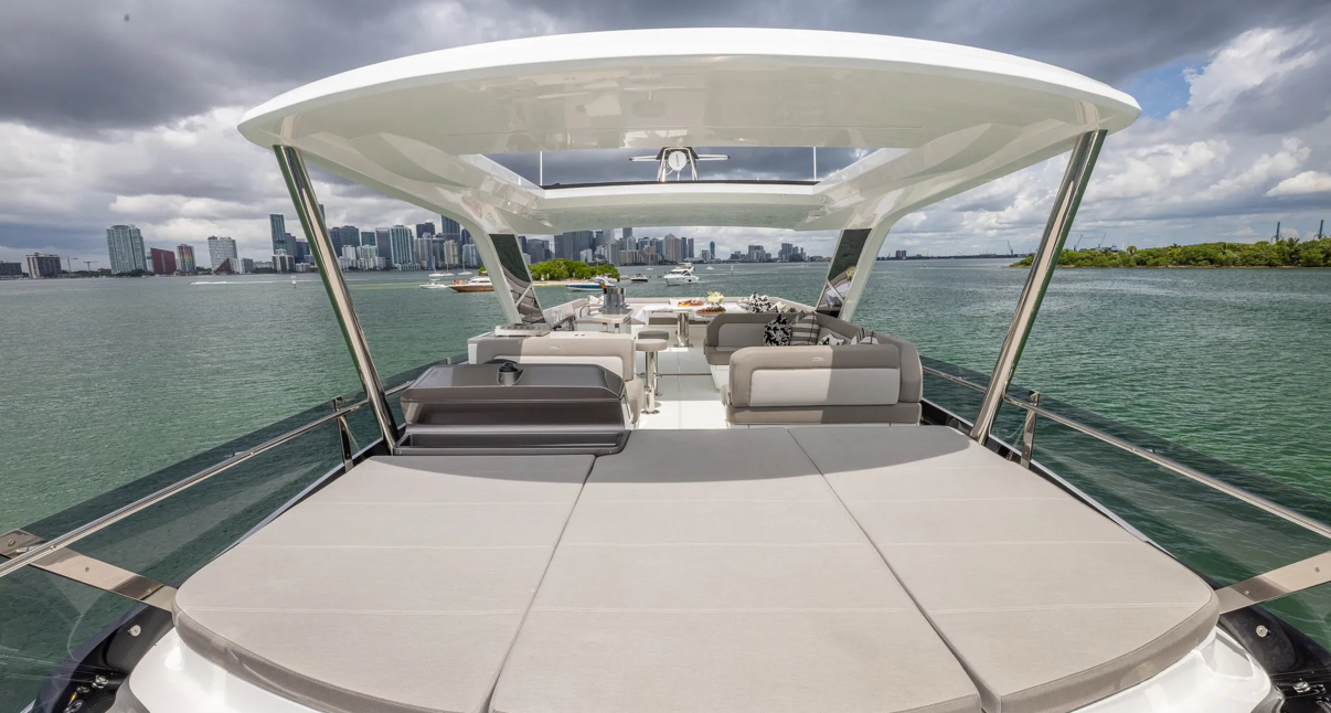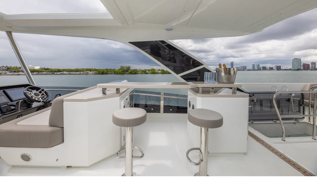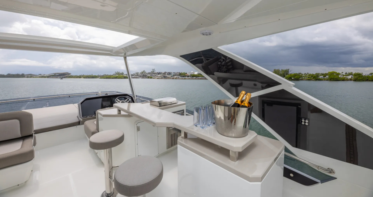 Get onboard this absolute Luxury of a vessel. By combining the lightweight but incredibly strong attributes of carbon fiber with powerful engines, the Galeon 680 FLY serves up stunning performance perfectly suited to your escape. Available for day charter or a trip to The Bahamas. When you step on board, you’ll be taken aback by the overabundance of space, amenities, and a class-leading level of detail. One look makes it