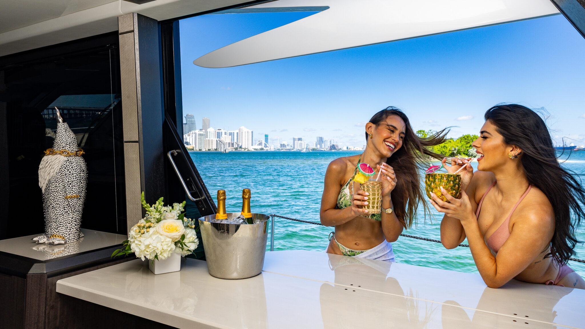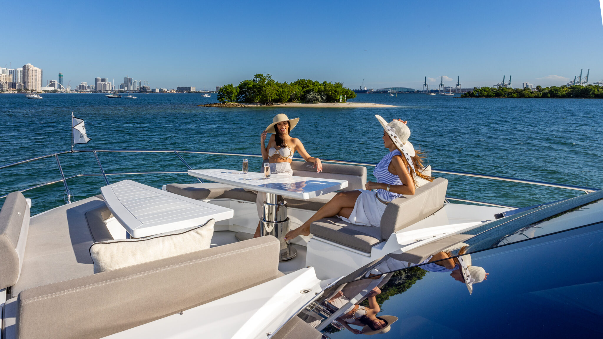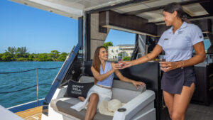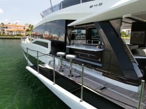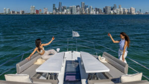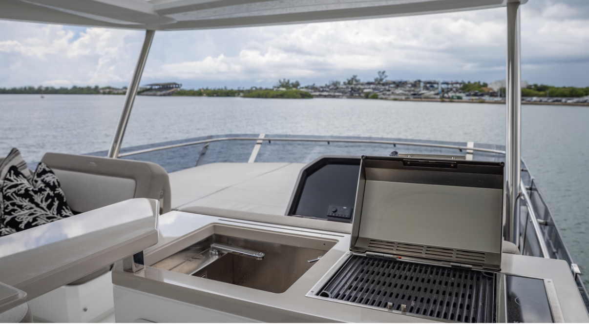 Get onboard this absolute Luxury of a vessel. By combining the lightweight but incredibly strong attributes of carbon fiber with powerful engines, the Galeon 680 FLY serves up stunning performance perfectly suited to your escape. Available for day charter or a trip to The Bahamas. When you step on board, you’ll be taken aback by the overabundance of space, amenities, and a class-leading level of detail. One look makes it