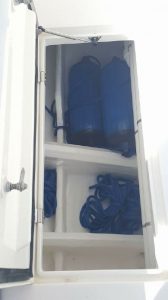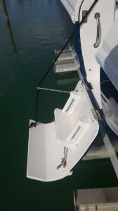 Extras: Very convenient and easy to use fresh water flush system for the outboards. Port side swim door that when opens doubles as steps with a hand rail. Bow cushions for lounging, Windless system for the anchor.