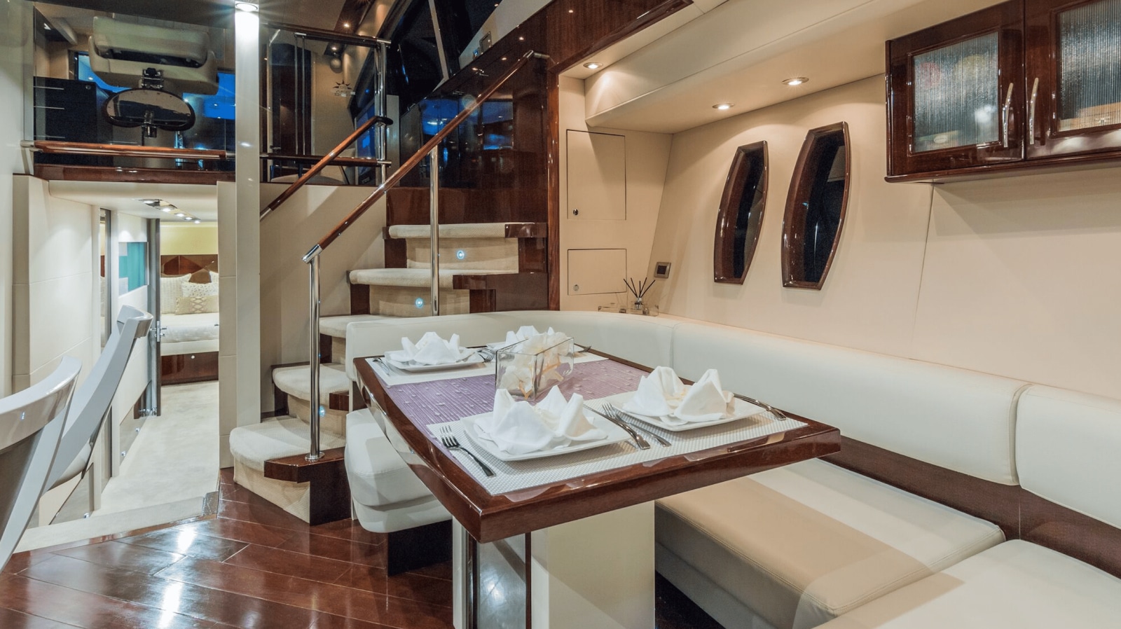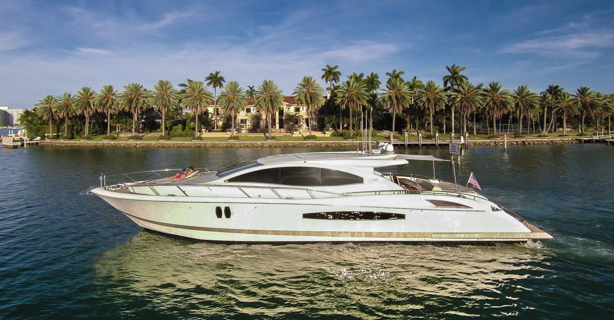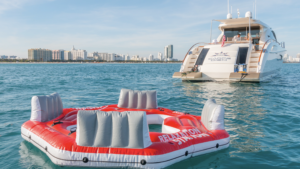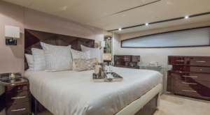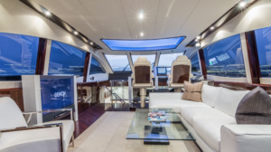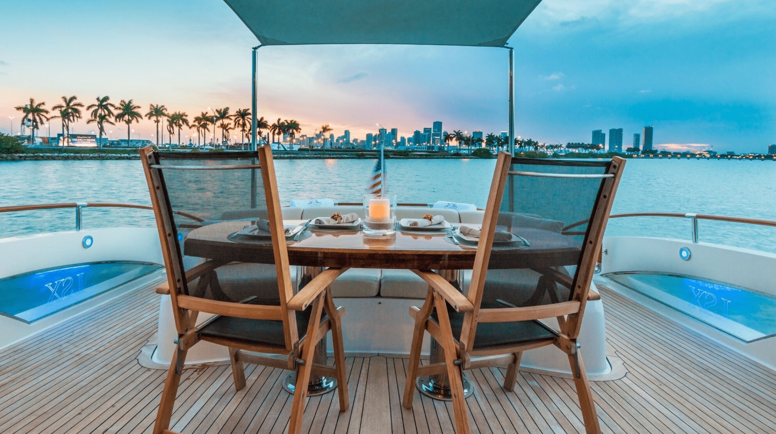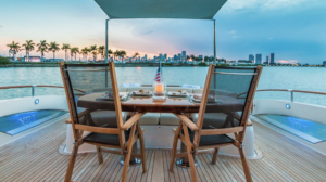 From the moment you first glance at the revolutionary design there is an undeniable presence about this Lazzara model. It exudes modernism, sleek, elegant, and confident. It is the ultimate yachting experience you want to be part of. She is equipped with 4 cabins (sleeps 8). 1 king bed and 3 queen and 4 bathrooms. Moreover, it has a platform for easy access jumping in the ocean and relax on it while soaking up the sun. Enjoy the waverunner, pull tubes and beach games while taking a break. Captain, mate, Local idle cruising fuel, soft drinks, water and ice included. Bring your own F&B or we can setup catering for you. For dockside restaurant reservation please call ahead. Call or text us for additional questions at 305-358-0745