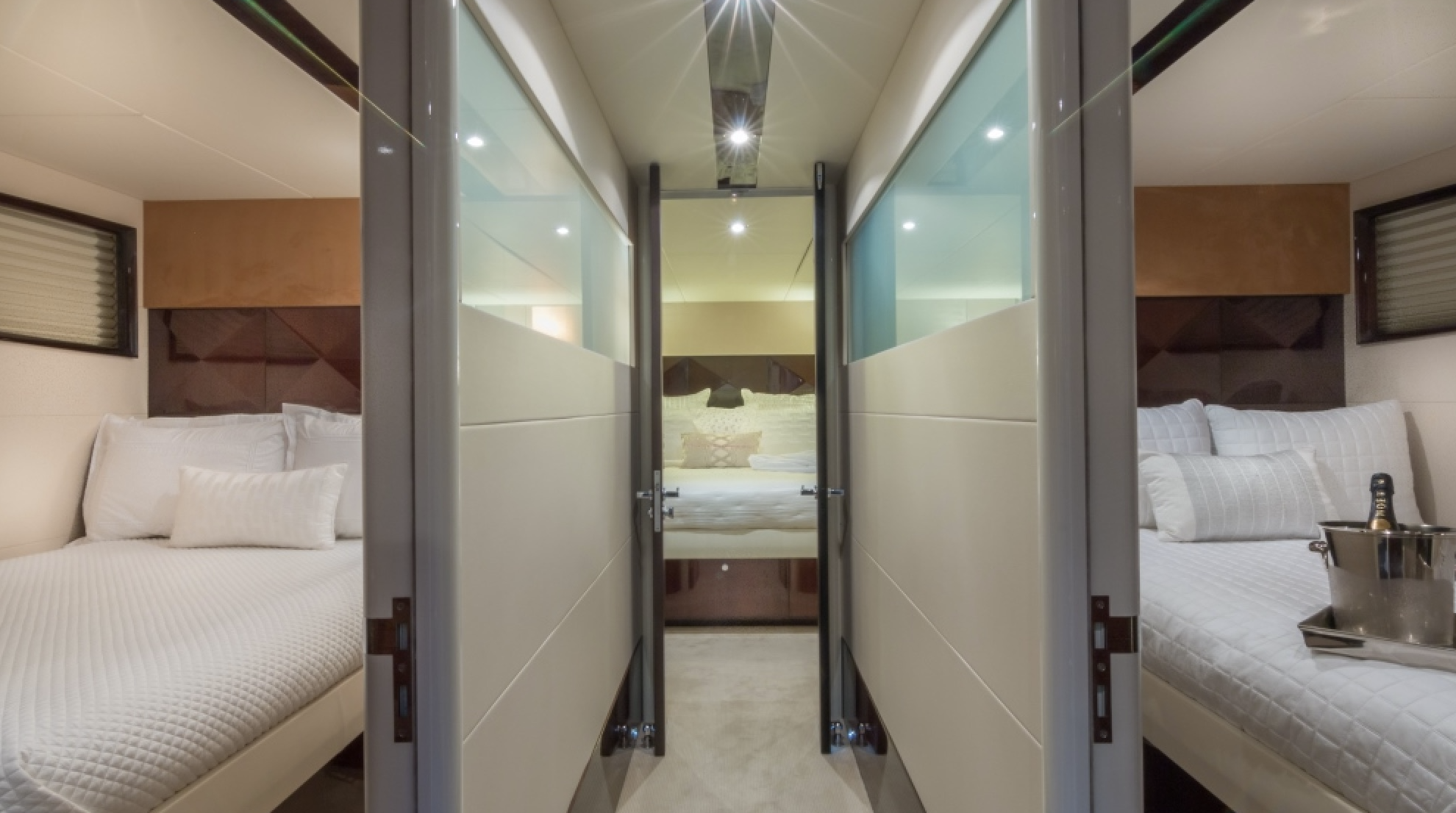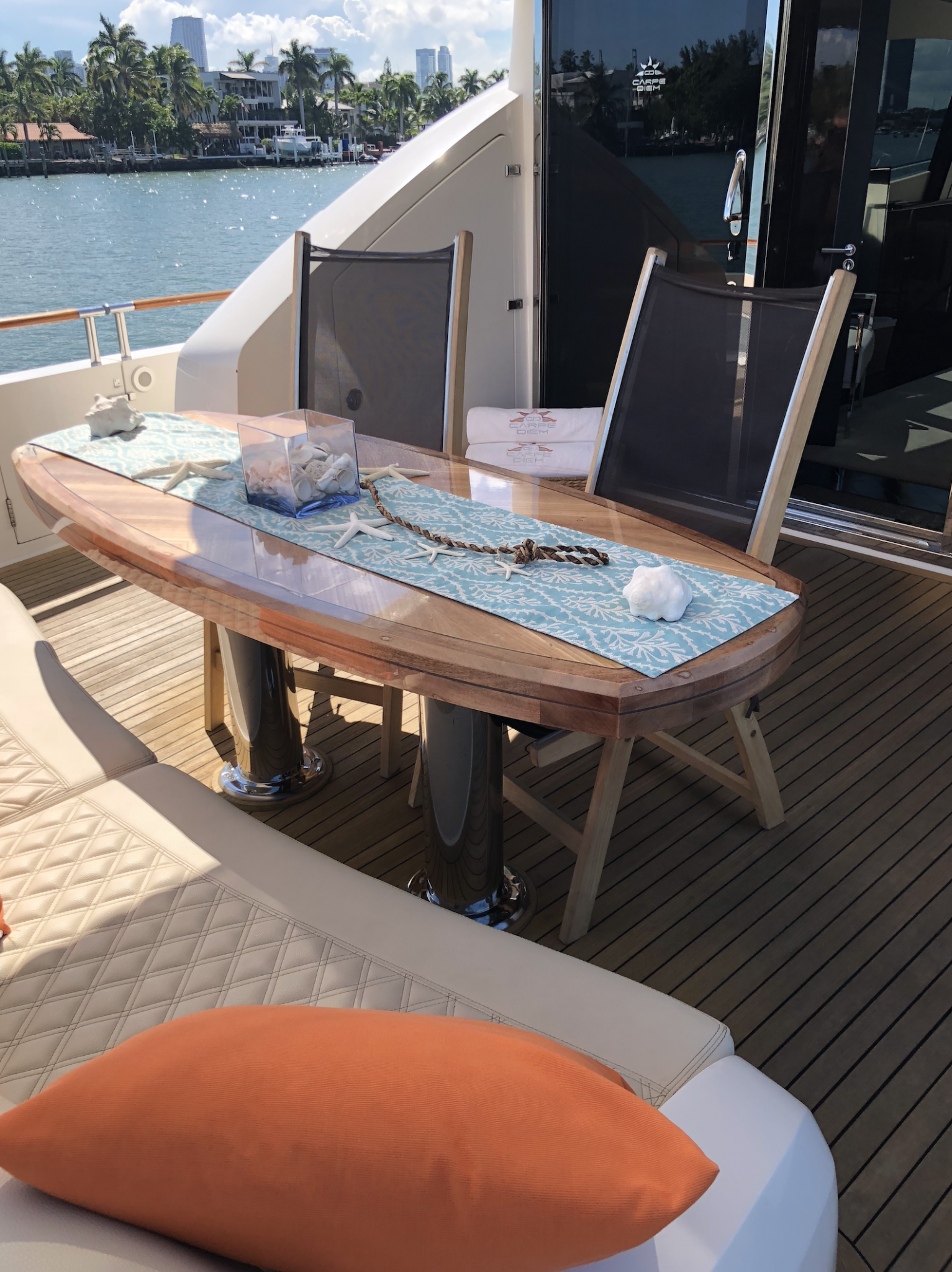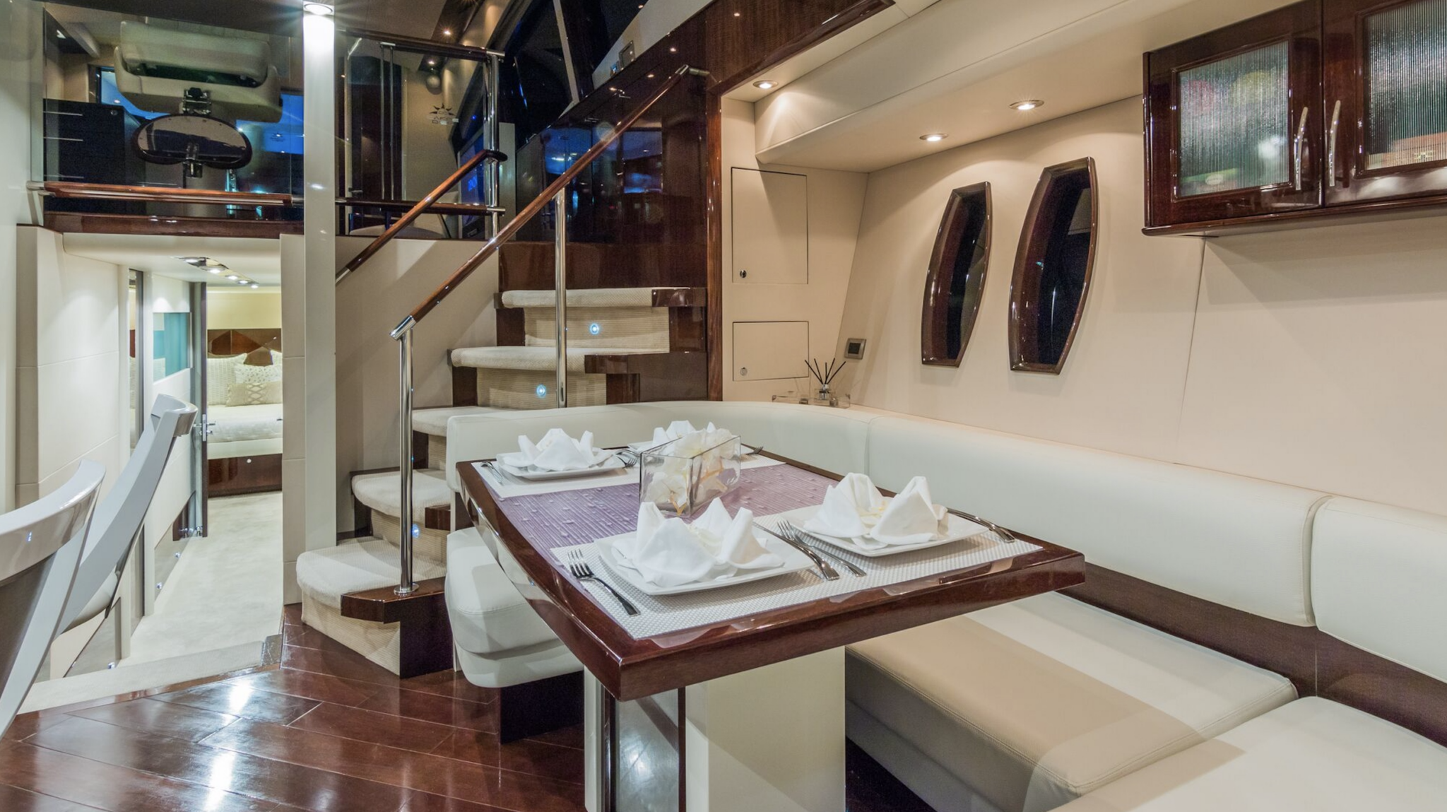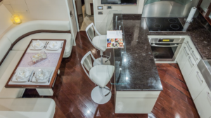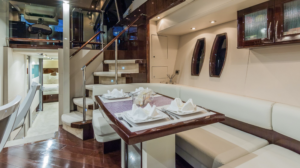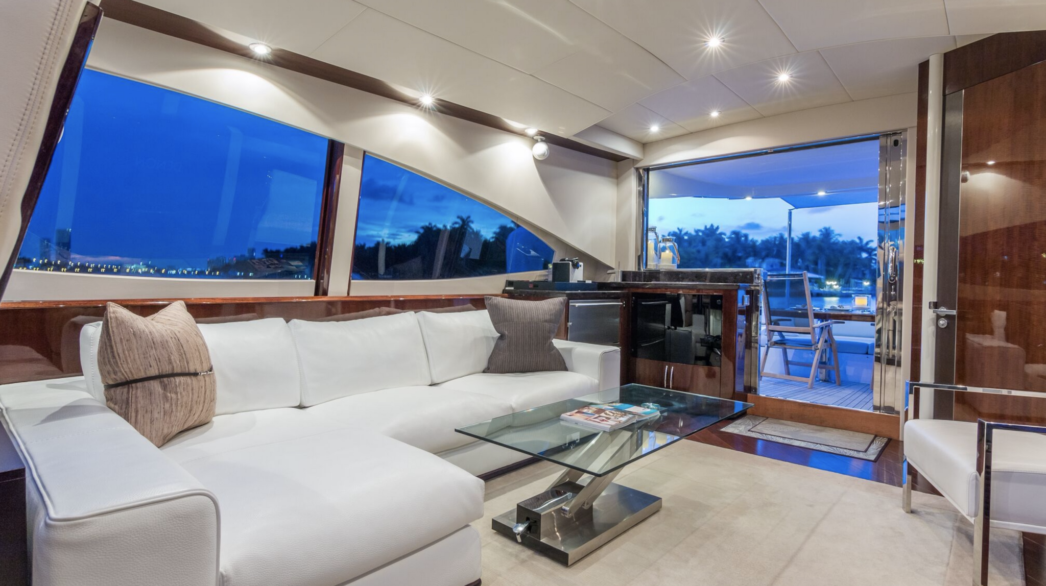 From the moment you first glance at the revolutionary design there is an undeniable presence about this Lazzara model. It exudes modernism, sleek, elegant, and confident. It is the ultimate yachting experience you want to be part of. She is equipped with 4 cabins (sleeps 8). 1 king bed and 3 queen and 4 bathrooms. Moreover, it has a platform for easy access jumping in the ocean and relax on it while soaking up the sun. Enjoy the waverunner, pull tubes and beach games while taking a break. Captain, mate, Local idle cruising fuel, soft drinks, water and ice included. Bring your own F&B or we can setup catering for you. For dockside restaurant reservation please call ahead. Call or text us for additional questions at 305-358-0745